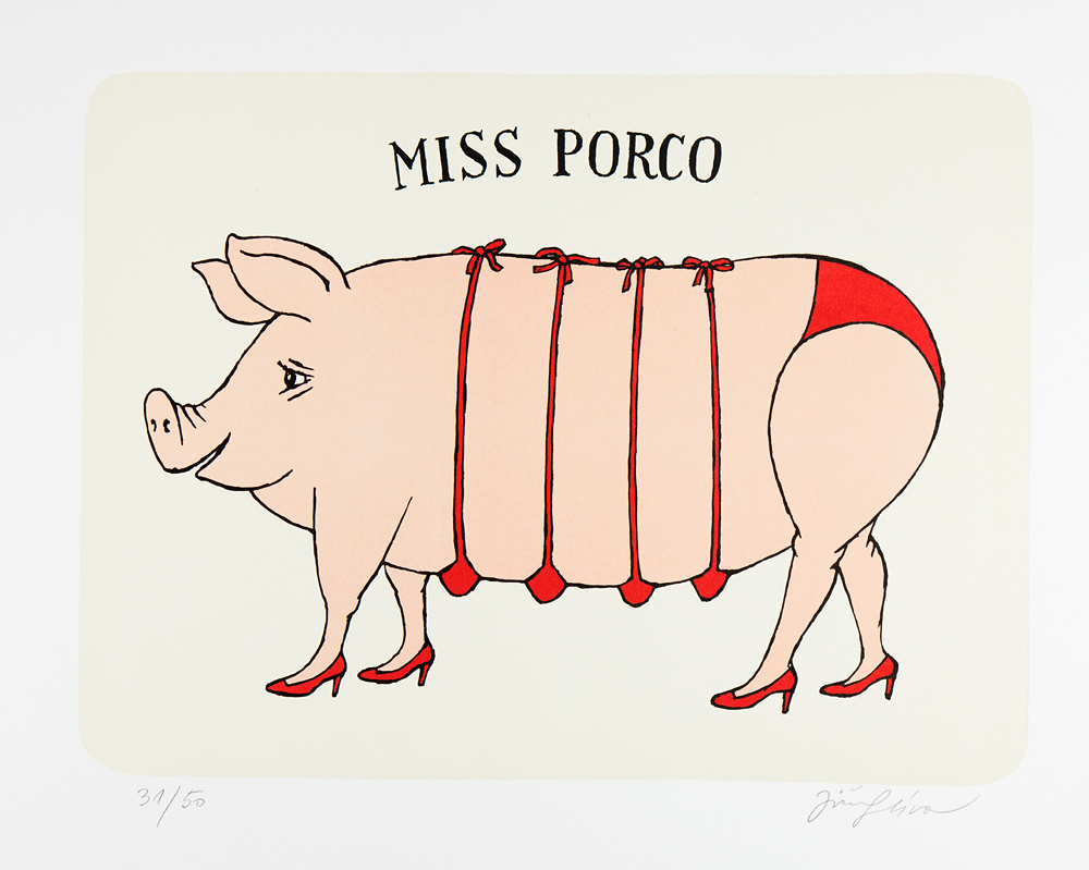 He makes also colour litographs, etchings and oil paintings. His graphic humor is usually built on a paradox - position other serious and common themes in unexpected contrasts.
